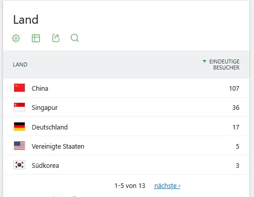 Interessante Beobachtung bei einigen unserer Webseite. China führt beim Zugriff auf die Webseiten, wie ein Blick auf Matomo zeigt. Andere WordPress-Nutzer berichten von ähnlichen Zugriffen, welche in den letzten Monaten deutlich zugenommen haben.