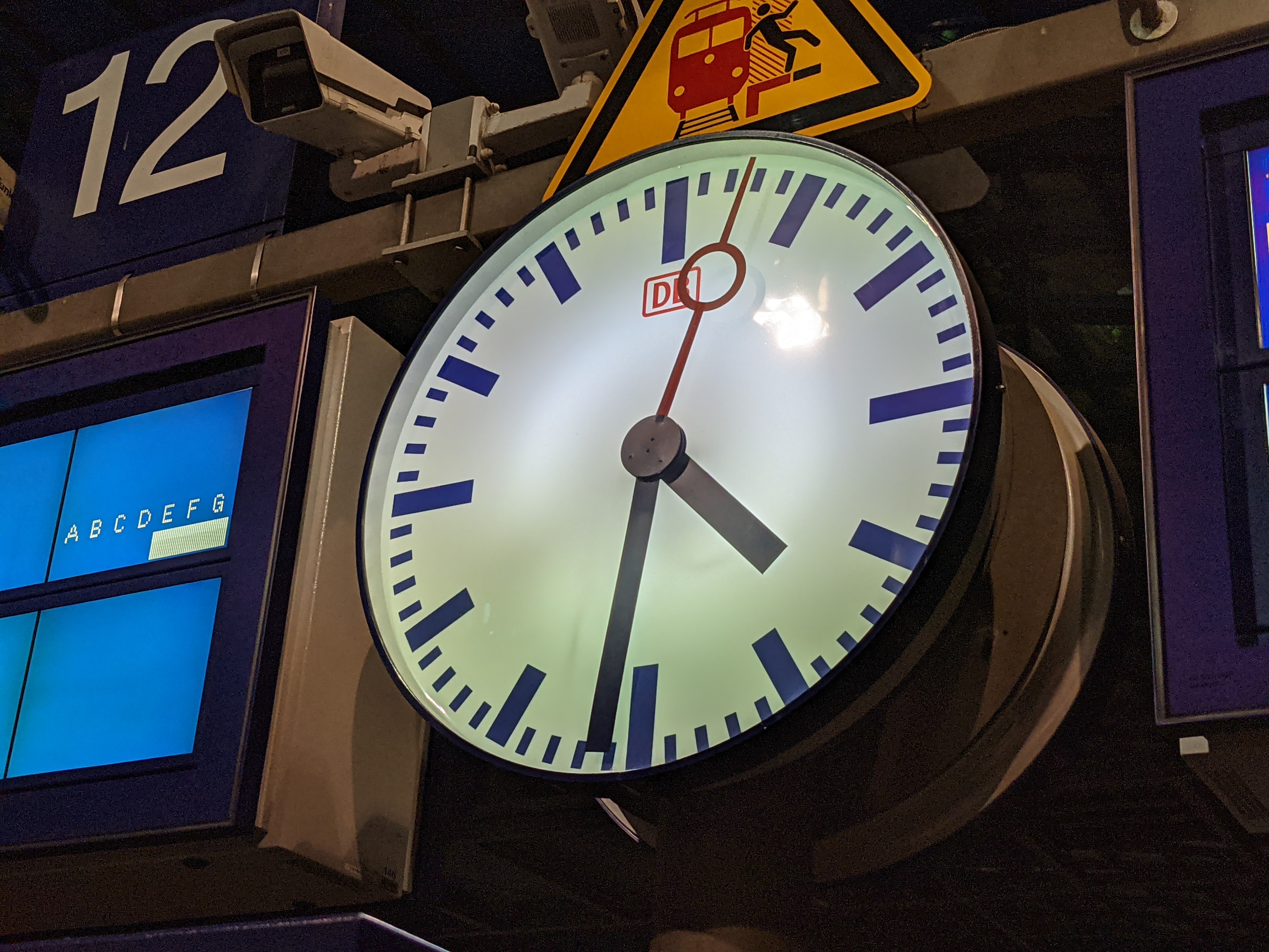Eine Bahnhofsuhr, welche die aktuelle Zeit anzeigt.