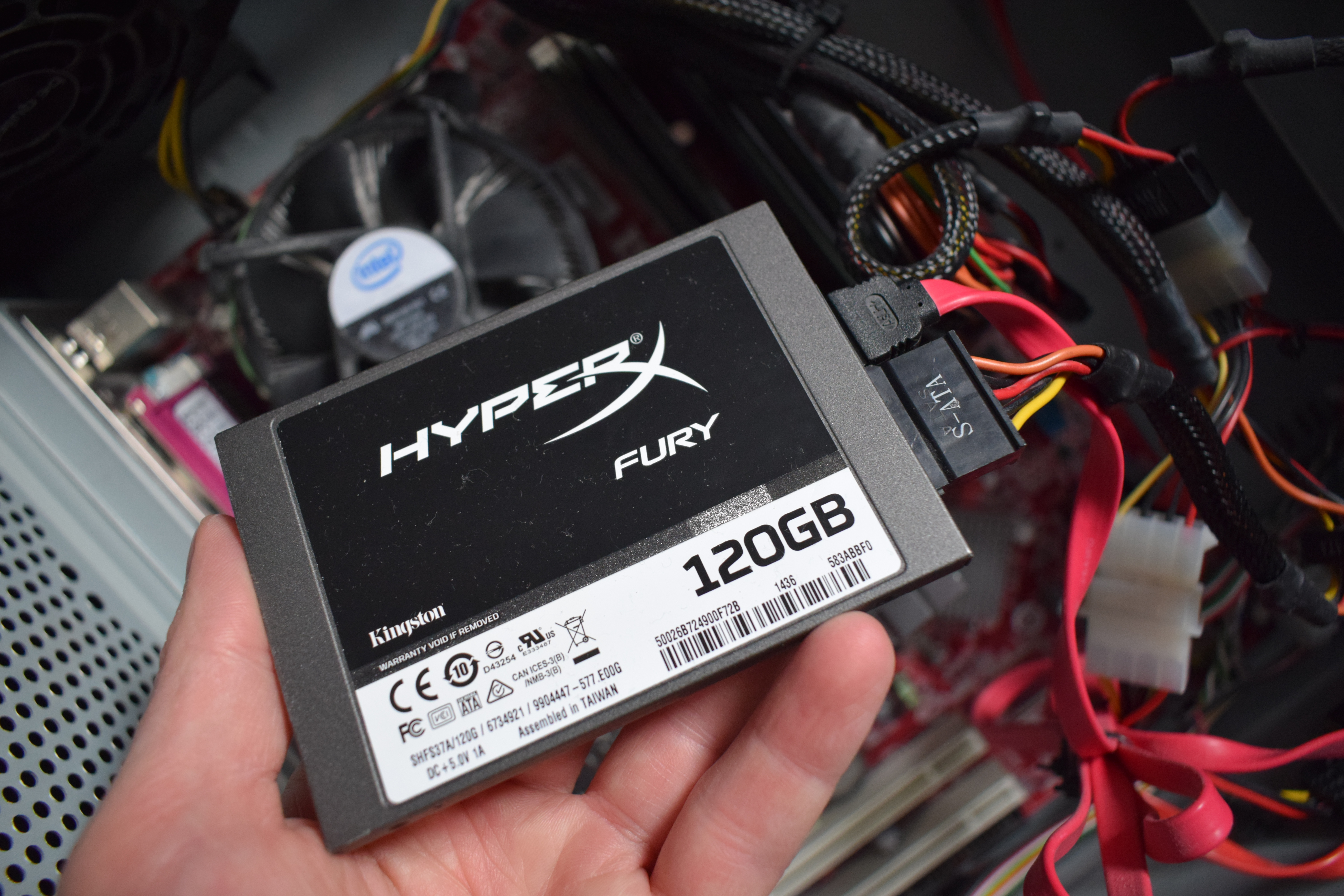 Eine SATA-SSD von Kingston in einem Desktop-Computer.