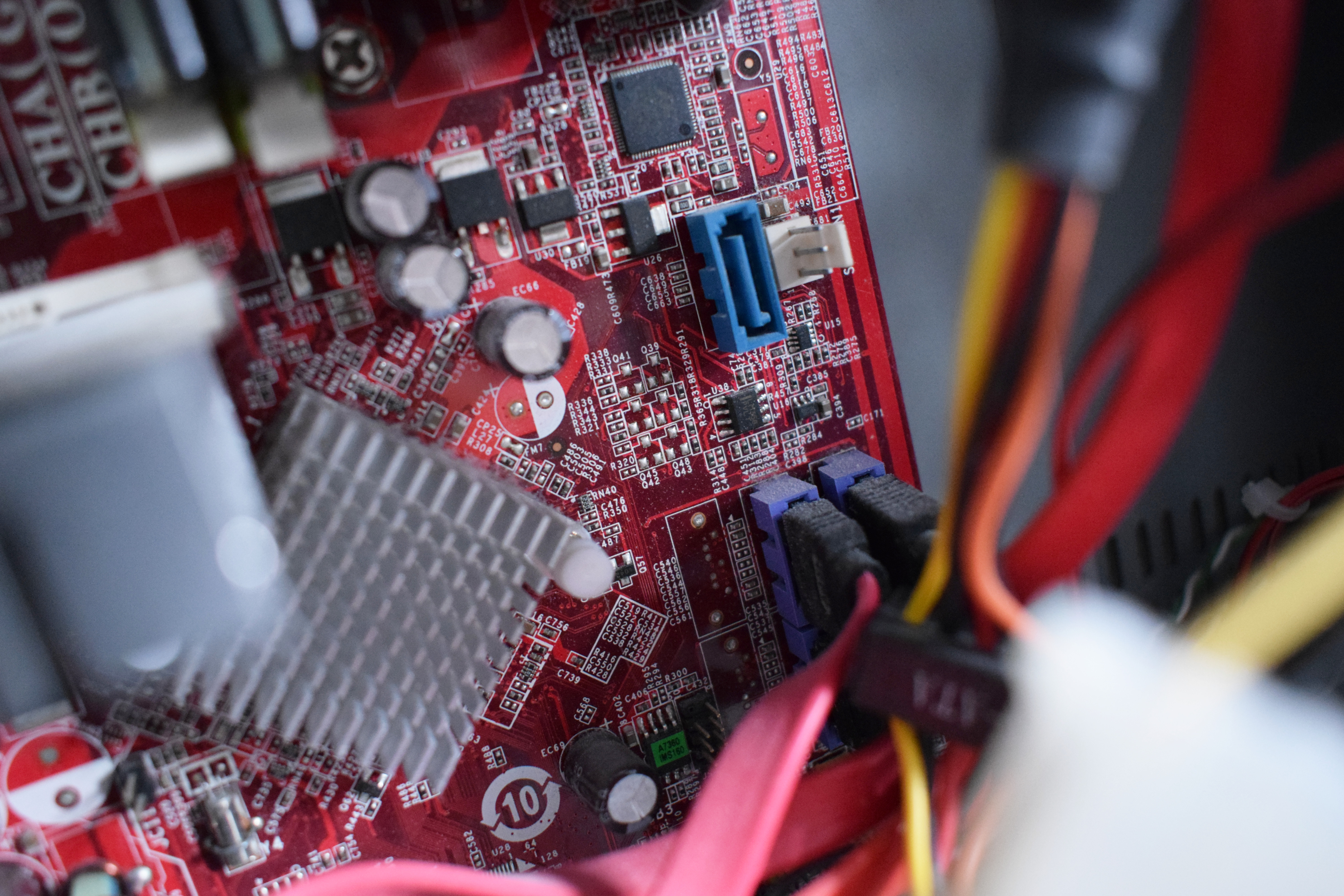 - Anschlüsse, Computer, Computerchips, Desktop, Kühlkörper, Mainboard, SATA, Technik
