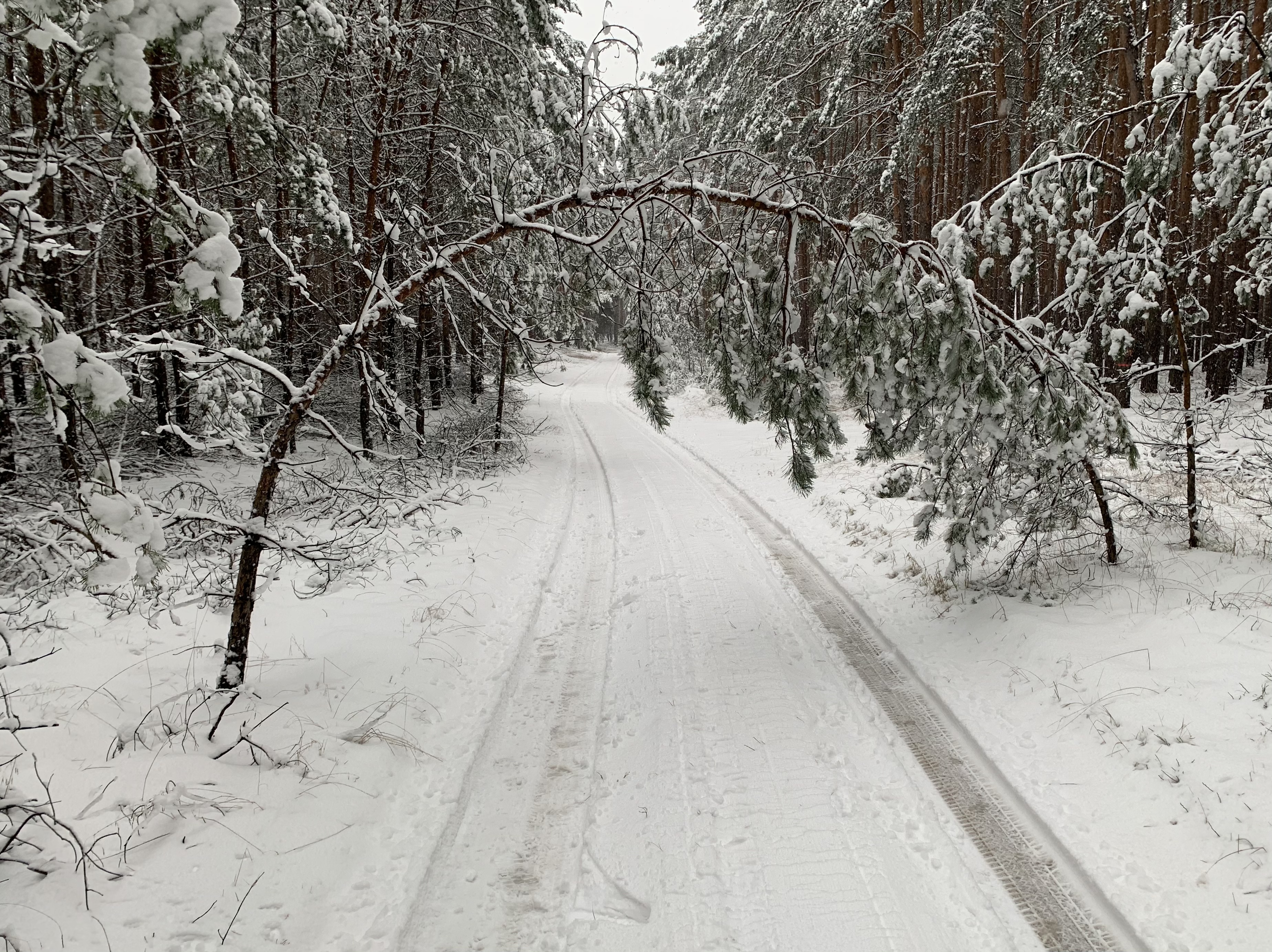 - Bäume, Frost, kalt, Kiefern, Last, Pforte, Reifenspur, Schnee, Schneelast, Spur, Tannen, Wald, Weg, Winter, Winterwald, Ziel