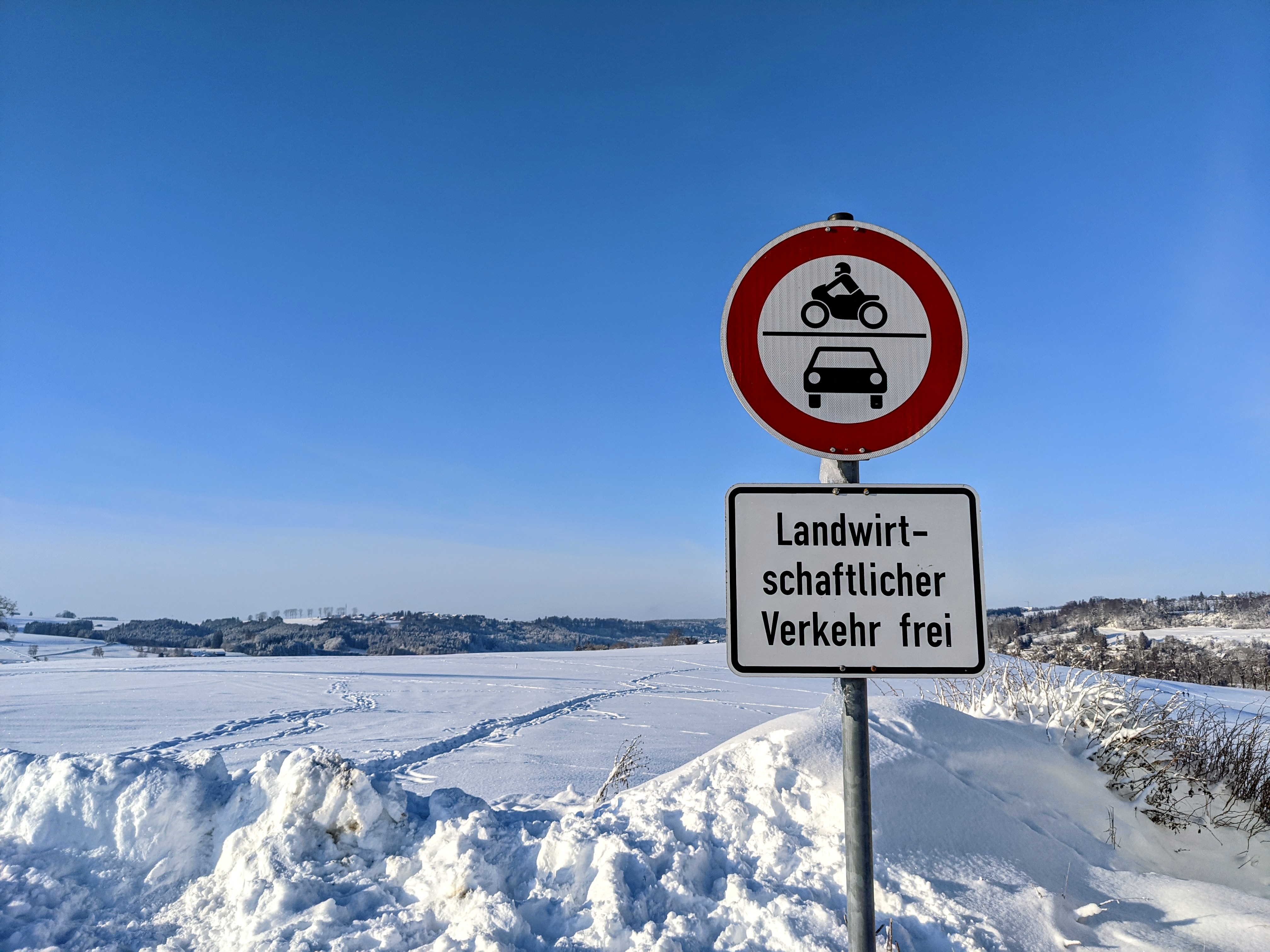 - Kälte, Landwirtschaft, Schnee, Verkehr, Verkehrsschild, Winter