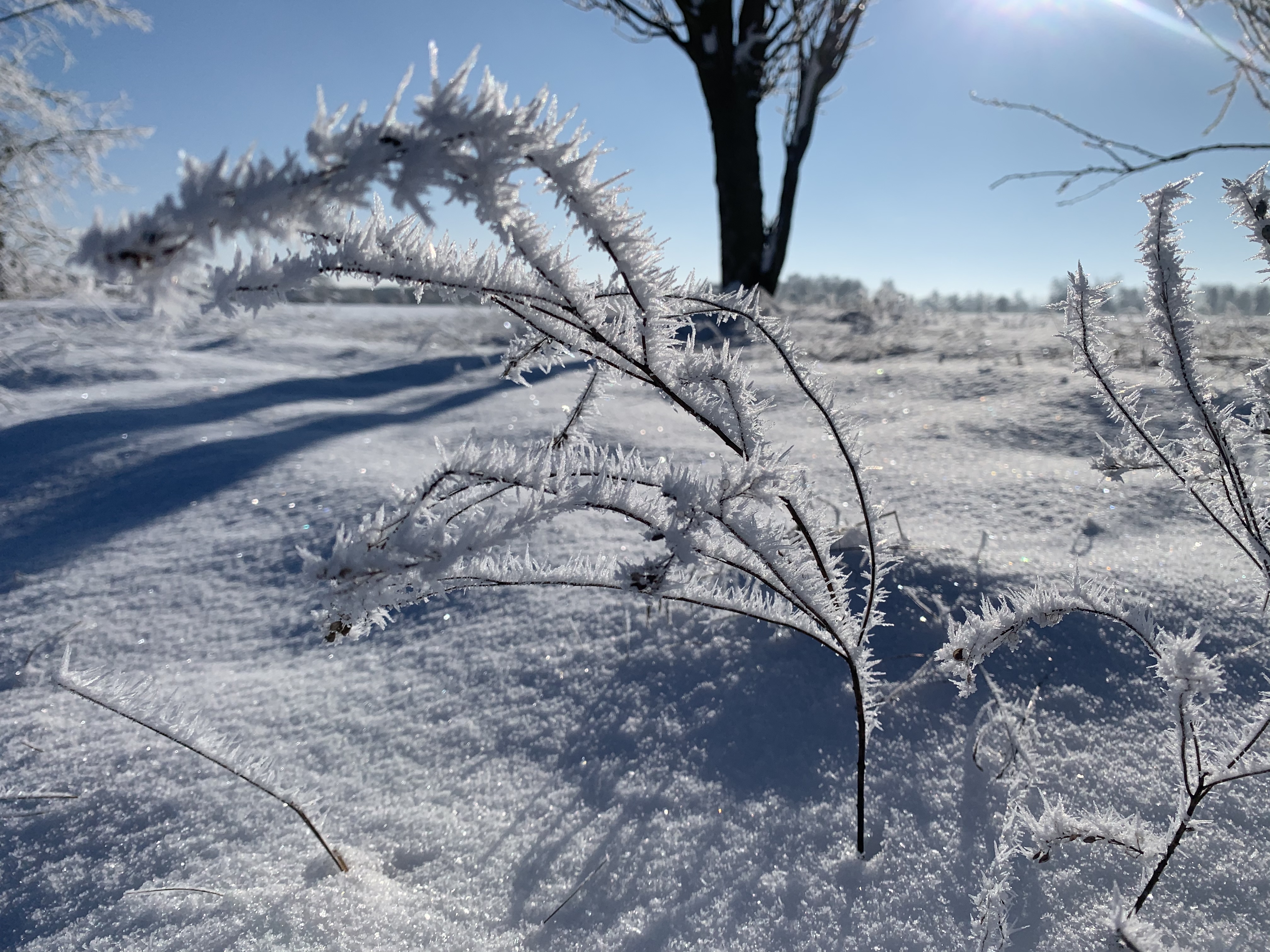- Ast, Baum, Eis, Eiskristalle, frieren, Frost, Glitzer, kalt, Kristalle, Landschaft, minus Grade, Natur, Pflanze, Ruhe, Schnee, Schneekristalle, spitz, Stille, unter Null, Winter, winterlich, Zweig