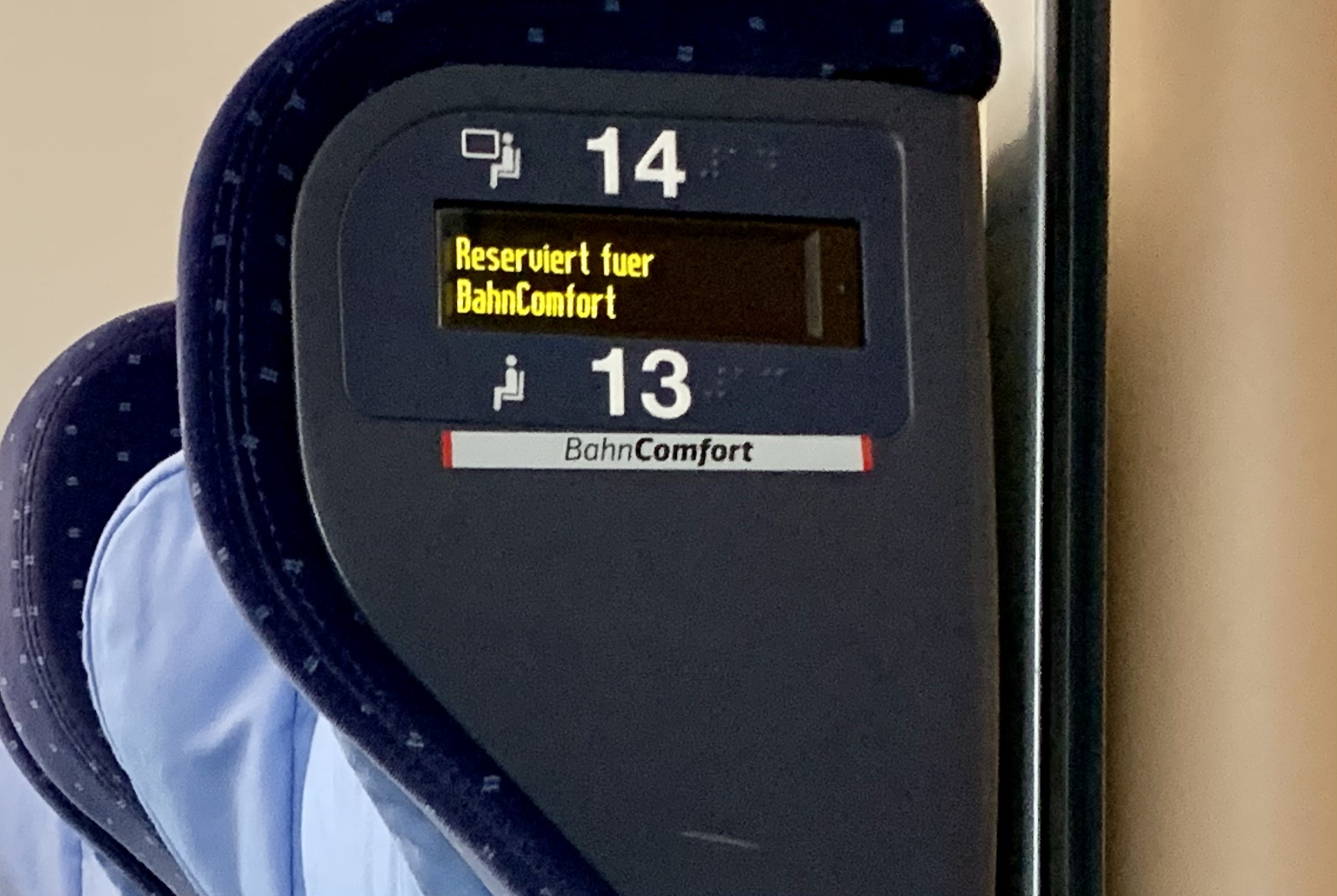 Ein Sitzplatz im ICE reserviert für BahnComfort Kunde