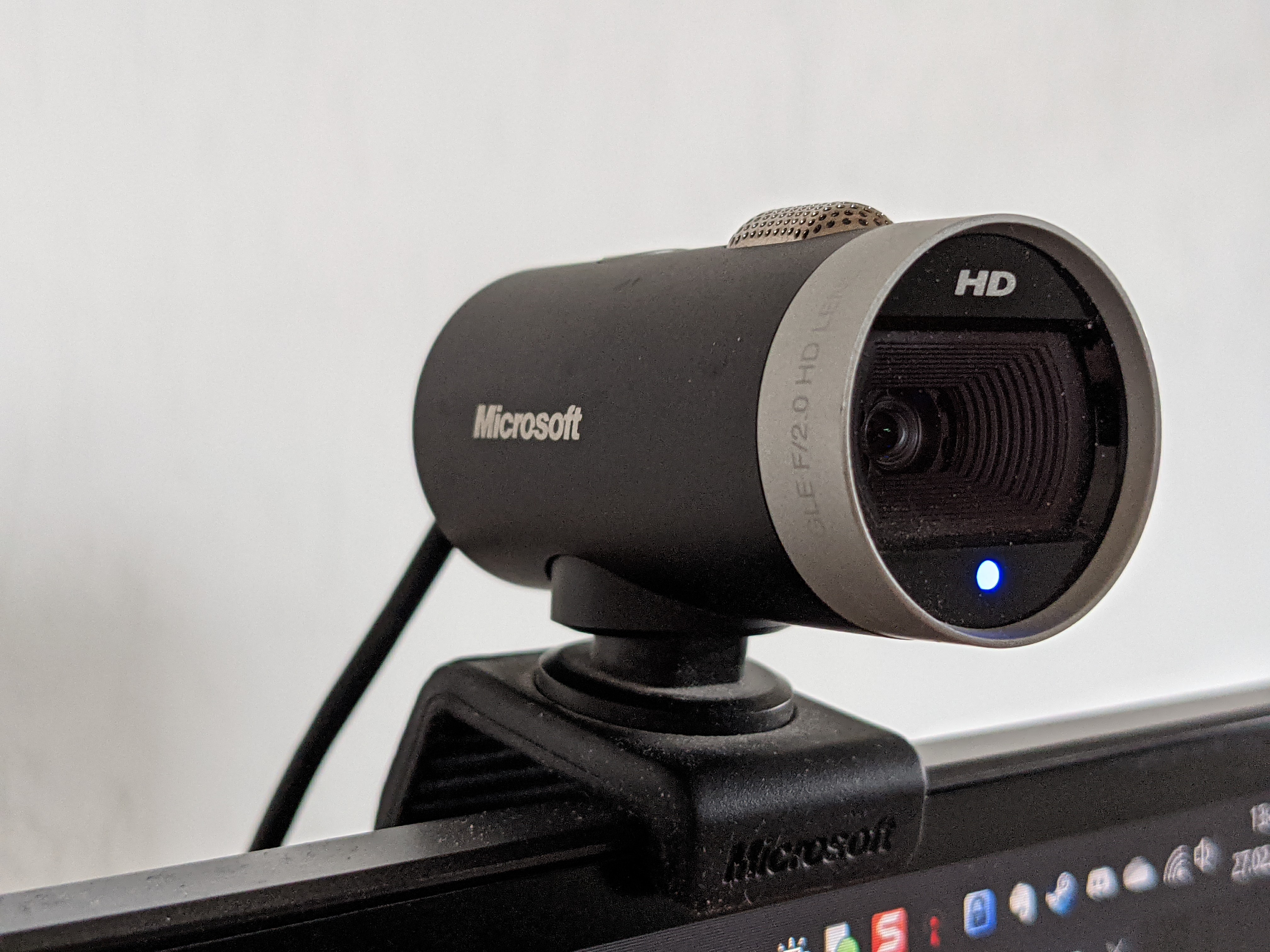 Eine Microsoft LifeCam Cinema Webcam mit HD-Auflösung, ideal für das wöchentliche Online-Bier via Skype
