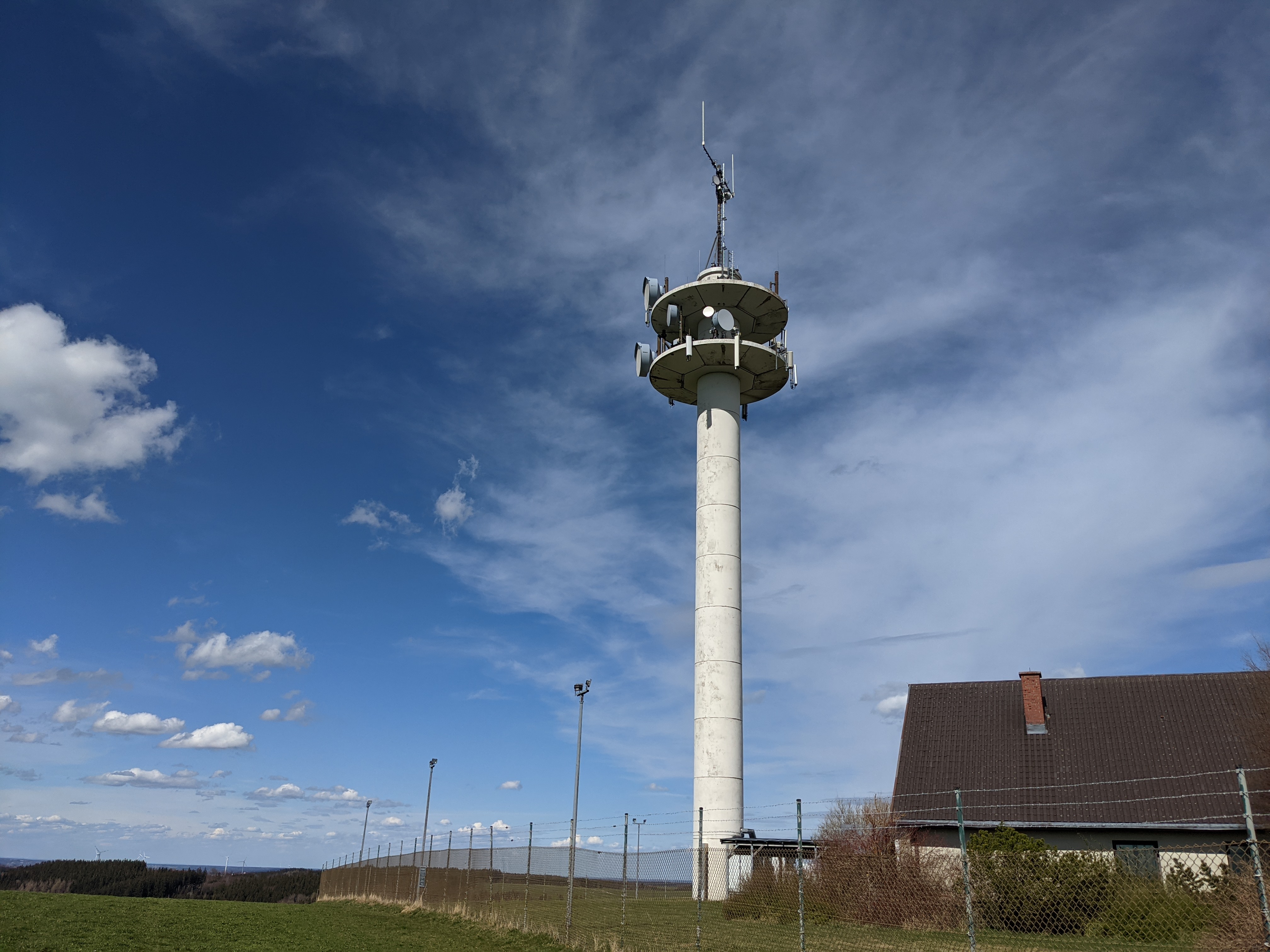 - 5G, Antenne, Blau, Funk, Funkanlage, Funkmast, Funkturm, Handy, Himmel, LTE, Mobilfunk, Smartphone, Turm, Wolken
