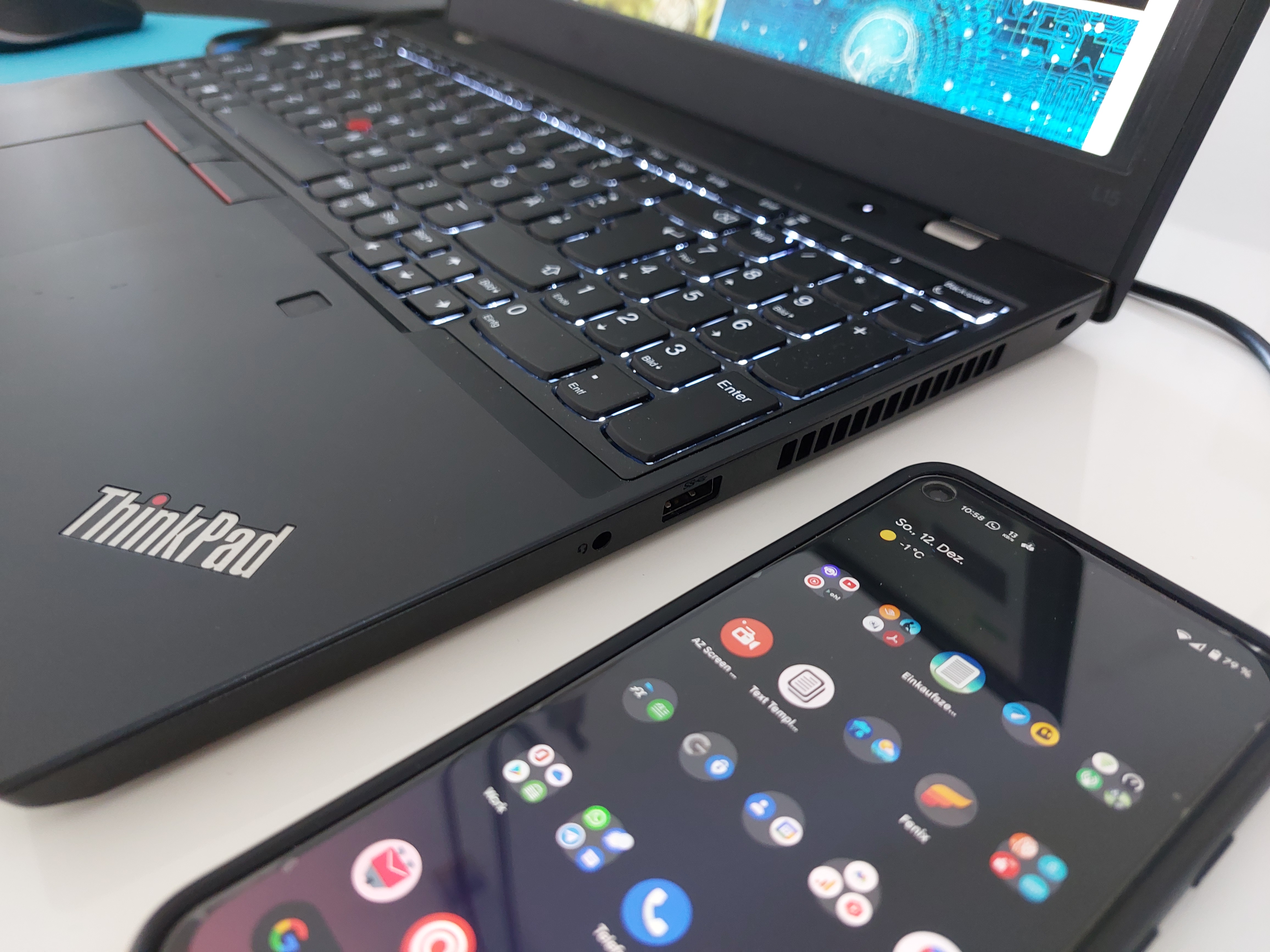 Ein Smartphone und ein Laptop bereit zur Synchronisation über WLAN.