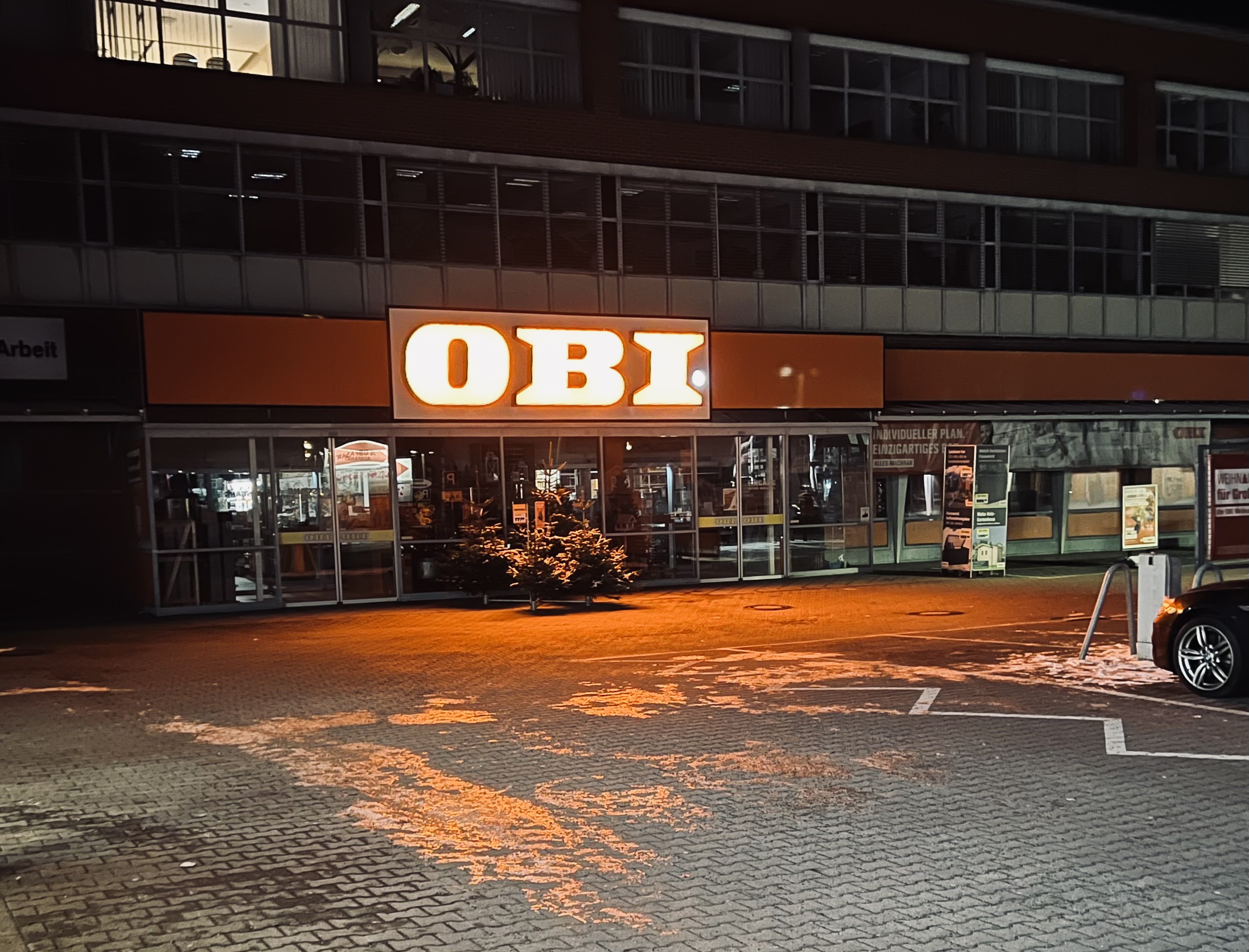 ein geschlossener Obi-Baumarkt mitten in den Stadt.