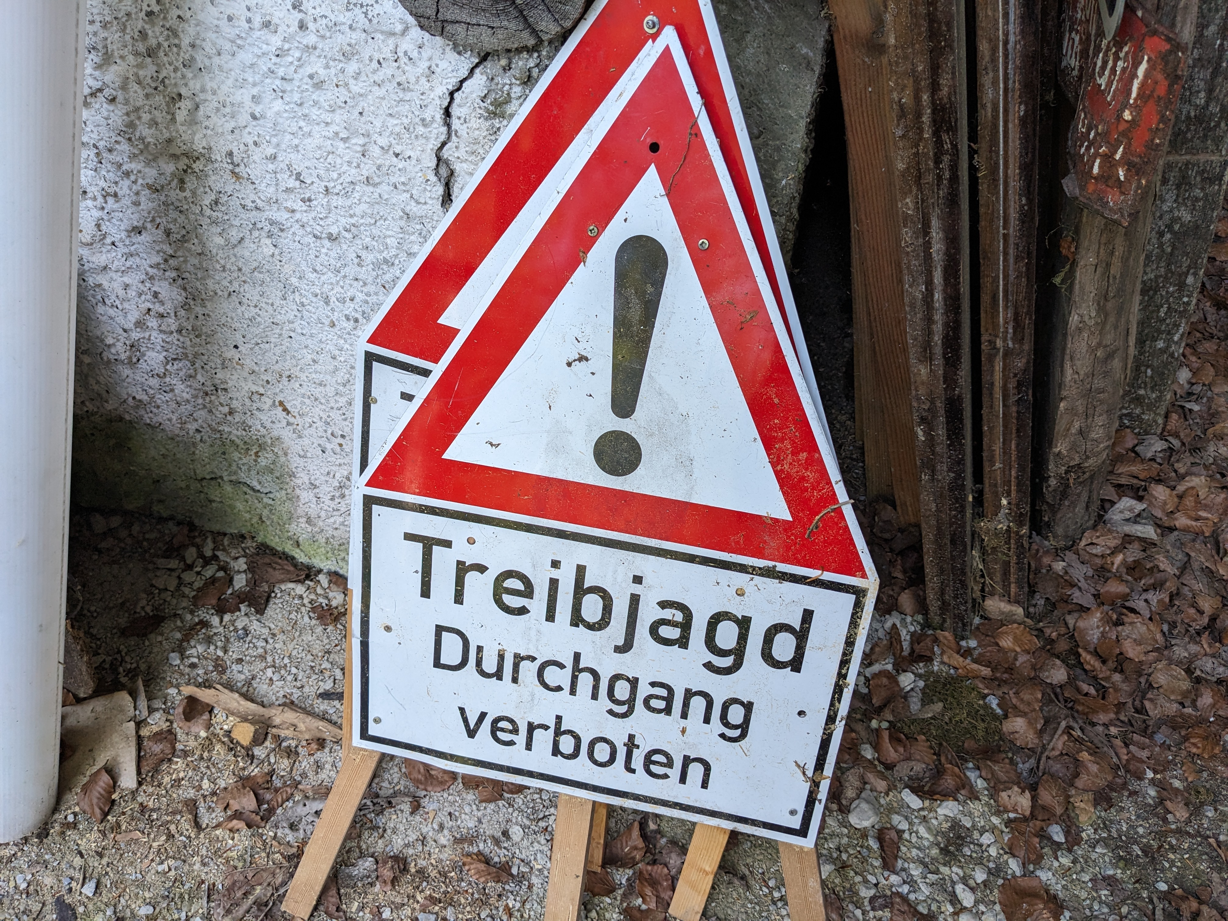 Hier ist der Durchgang verboten, weil gerade die Sau durch den Wald gejagt wird.