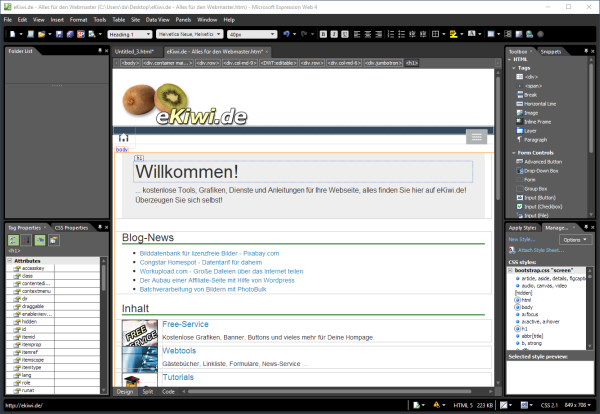 Microsoft Expression Web ist eine Software zur Erstellung von Webseiten. Leider wird die Software nicht mehr weiter entwickelt. Die Software ist dadurch mittlerweile kostenlos erhältlich. Auch wenn die Software nicht mehr weiter entwickelt wird, funktioniert Sie ohne Probleme.