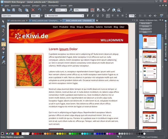 Magix Webdesigner ist eine umfangreiche Software um schnell Webseiten zu erstellen, ohne dass man sich um die technischen Hintergründe kümmern muss. Die Software ist modern und wird aktiv weiter entwickelt.