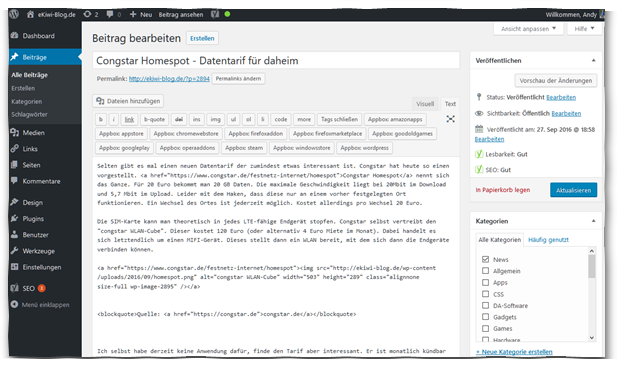 Wir verwenden WordPress für unseren Blog: www.ekiwi-blog.de.